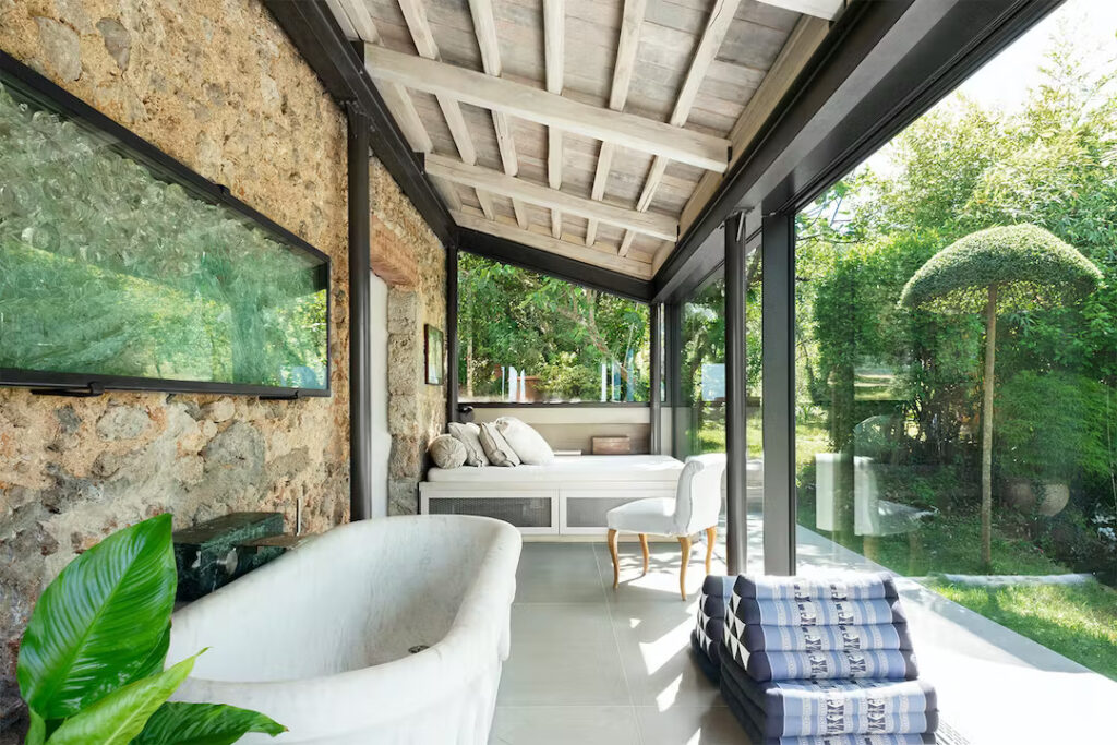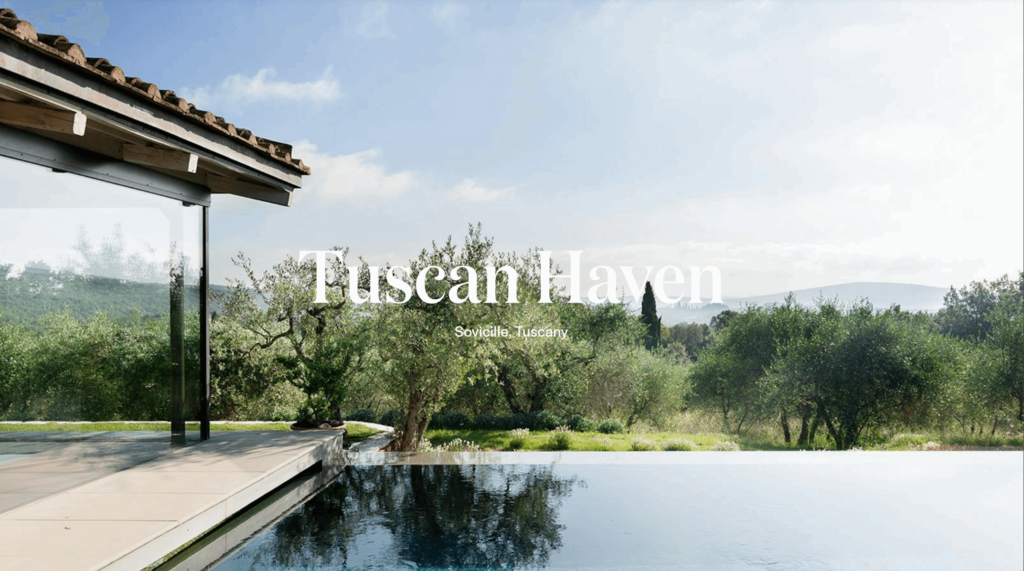 Situated a short drive outside the bustling medieval city of Siena, this villa offers a true escape in the Tuscan countryside. Originally constructed as a watchtower, its 12th-century exterior has been updated with a stunning glass pavilion that offers 270-degree views of rolling Tuscan hills covered in cypress trees and olive groves. Beyond the sliding doors, an oxygen-cleaned pool offers a relaxing spot to while away your days, with a counter-current swim machine if you’re feeling active. And though it’s technically capable of accommodating up to four people, it makes for a perfect romantic retreat for two.